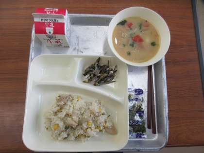 1/8 今日の給食 れんこんのちらしずし(ごはん)