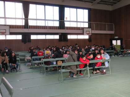 まず講堂に集まっていただいた方々に挨拶と当日の注意事項を連絡してもちつき大会がスタートしました。