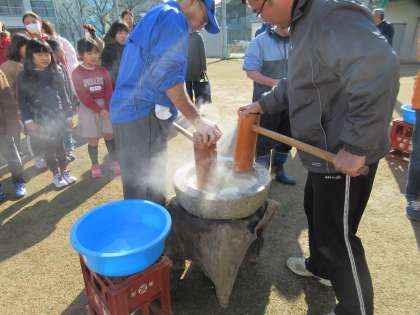 今日は午前中講堂付近を使って、PTAのもちつき大会が行われました。