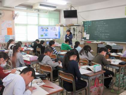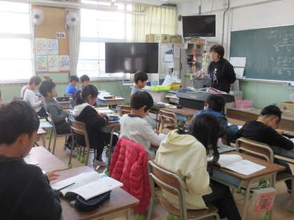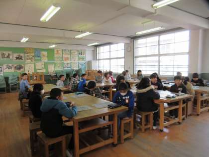 3年生の算数、4年生の社会と図工の学習の様子です。