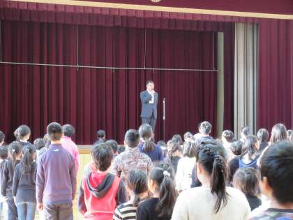 教頭先生と朝の挨拶をしてお話を聞きました。