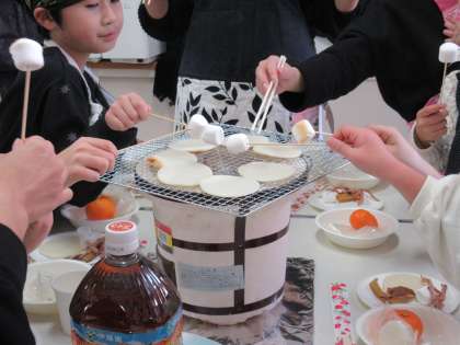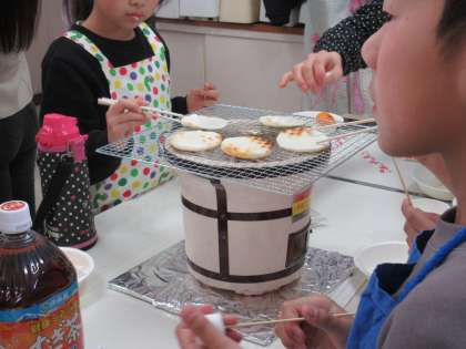 準備が整ったので、それぞれの班で思い思いのものを焼きました。お餅やせんべい、マシュマロなどおいしそうの焼けていました。