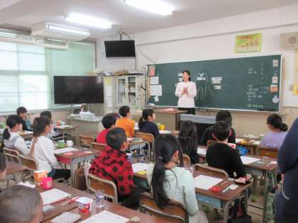 4年生は今日は「フッ化物塗布」をしていただきました。どうして虫歯になるのか、また虫歯の予防のためにフッ化物を歯に塗布するというお話をしていただいた後で、保健室でフッ化物を塗布していただきました。これからもしっかりと歯を磨いて、健康な歯を守りましょう。