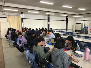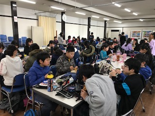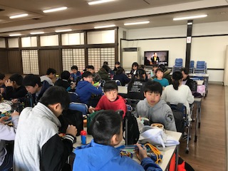 お腹がぺこぺこです。それぞれグループでお弁当の時間です。