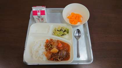献立:ハヤシライス,キャベツのひじきドレッシング,みかん,牛乳