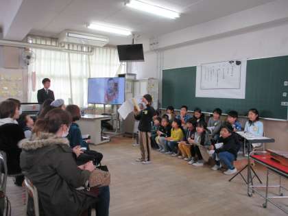 6年生はこの後学年集会が予定されているので、体育の学習の様子を見ていただいています。