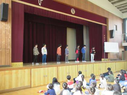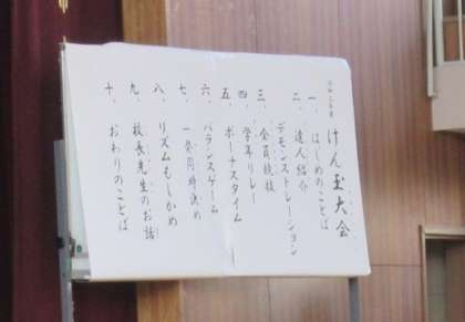 はじめに達人の得意な技を発表してもらいました。続いて、班全員で技に挑戦しました。