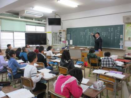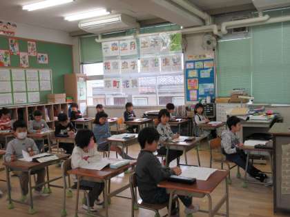 1年生の算数、3年生の算数、4年生の国語の学習の様子です。3年生は「そろばん」の学習をしています。