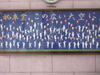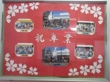 写真は玄関と1階階段横の掲示板の卒業お祝いの掲示です。