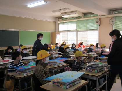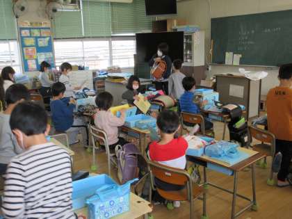 担任からお話を聞き、作品の整理をしたり持ち帰るものを確認したりしていました。