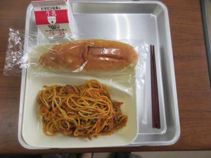 献立:スパゲッティミートソース、パン、牛乳 「ごちそうさまでした。」