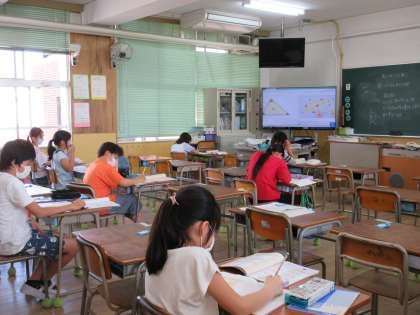 4年生の算数、5年生の算数、6年生の算数の学習の様子です。