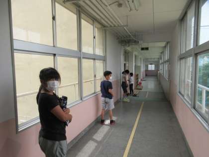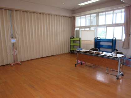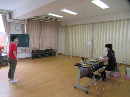 今日は視力検査が行われています。多目的室を使い、人と人の距離をしっかり取って検査をしています。