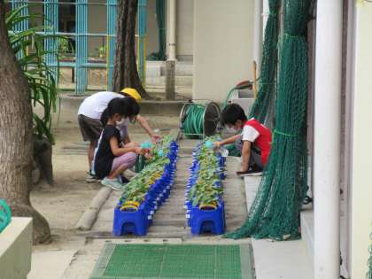 毎日熱心に水やりをして芽が出て本葉も増えてきました。これからがたのしみです。しっかりと観察しましょう。