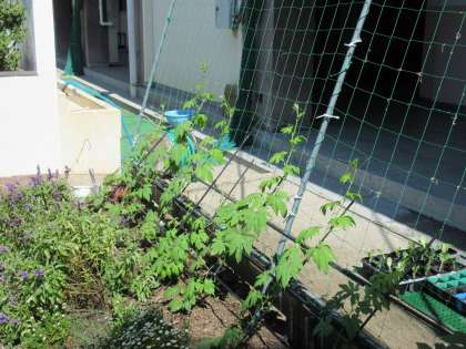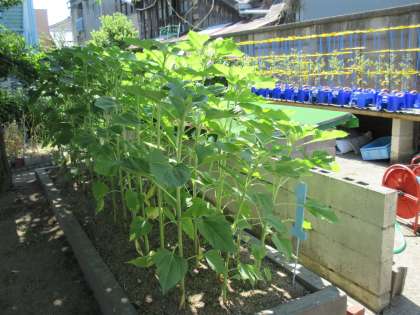 写真は学習園のゴーヤ、ひまわり、ひょうたんです。