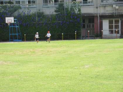 2年生は体育の時間に50メートル走をしています。1年生は国語と算数の学習です。