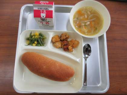 6/25 今日の給食 鶏肉のカレーマヨネーズ焼き