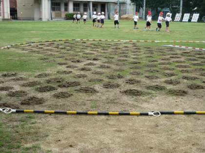 今年は去年よりも芝生の生育が良いので運動場の全面立ち入り禁止は夏休みだけで、芝の苗を植えたところだけ立ち入り禁止にする予定です。