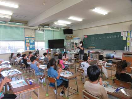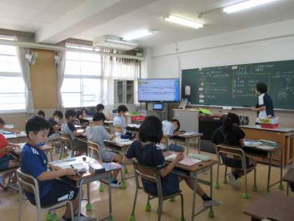 1年生の音楽「白熊のジェンカ」の学習の様子と3年生の算数の学習の様子です。3年生は二クラスに分かれて学習をしています。