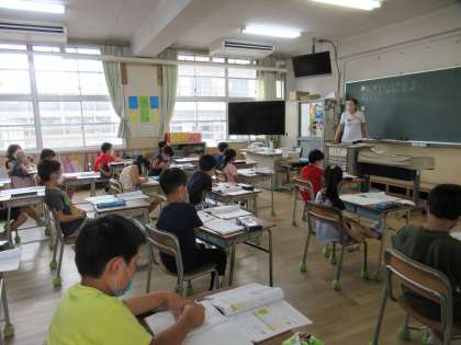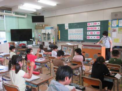 1年生はリズム打ちを2年生は数の表し方の学習をしています。