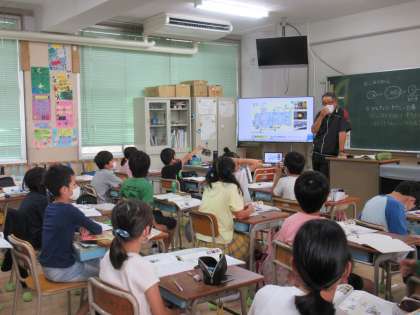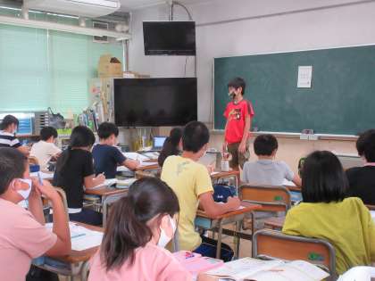 6年生の外国語の発表会、5年生の理科、4年生の社会の学習の様子です。