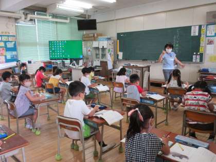 1年生の国語と算数、3年生の国語の学習の様子です。1年生は、ひらがなも数字もたくさん書けるようになりました。