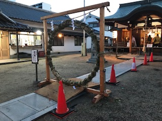 毎年作っていただいている「菅の輪くぐり」も用意されて、地域の方々がお参りされていました。先日、深江小学校の学習園の菅田刈りをしていただきましたが、その時に刈っていただいた菅を使って、輪を作られたということです。