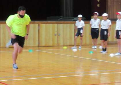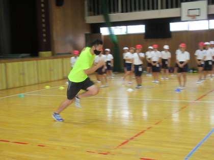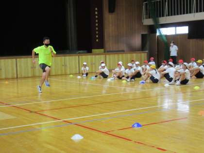 走るときに気をつける点や具体的な体の使い方など実際に見せていただきました。