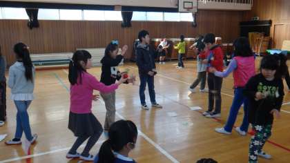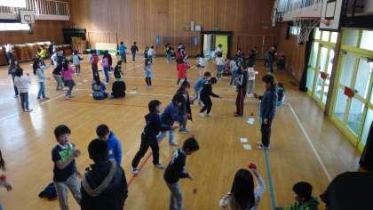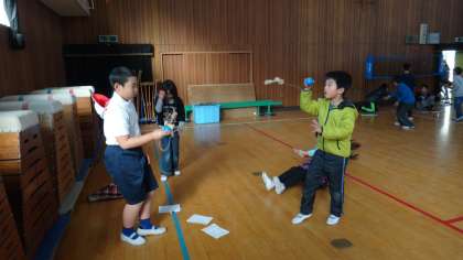 けん玉認定で思うように結果が出せなかった子どもたちに再度チャレンジできる、「けん玉おかわり認定」を行いました。申し込み人数が多いので今日は低学年だけの認定会になりました。けん玉委員会の子どもたちに技のコツを教えてもらいながらチャレンジしていました。