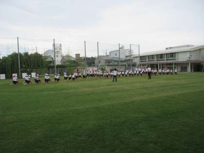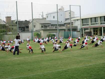 5・6年生の体育の学習の様子です。運動会の団体演技の練習をしています。