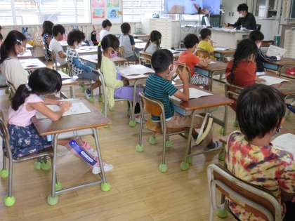 2年生の道徳、1年生の算数の学習の様子です。