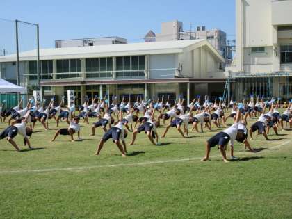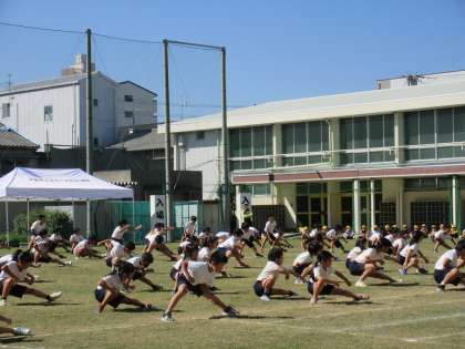 明日は運動会当日です。3分割で行われるため今日はそれぞれの学年の団体演技を見せてもらいました。どの演技にも最後は大きな拍手がおくられていました。