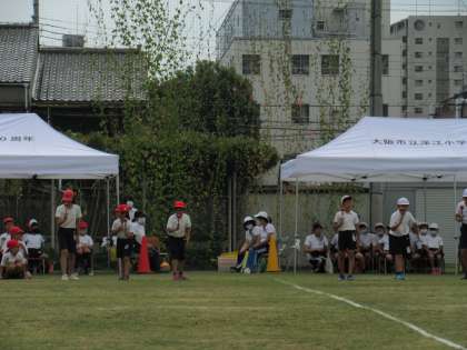 バランス技で走ったり、団体戦をしたり紅白で戦いました。