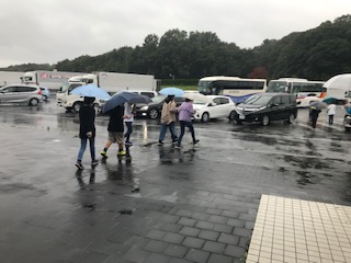 赤松SAに到着です。事故渋滞につかまって遅れ気味です。みんな元気にしています。