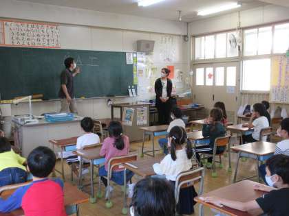 今年になって初めての低学年の外国語活動です。