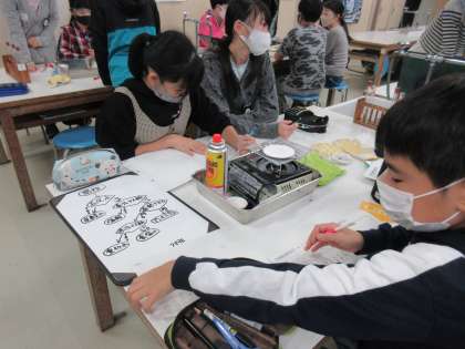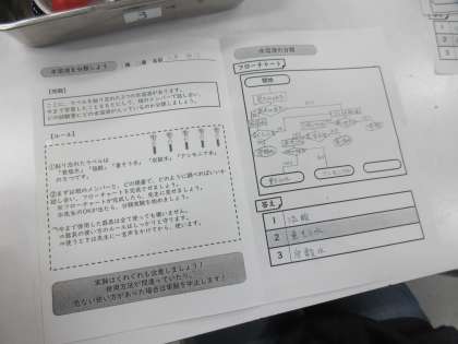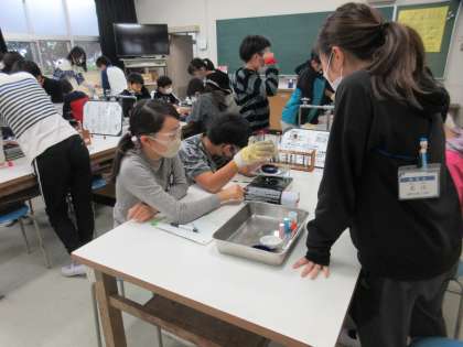 6年生の理科の学習の様子です。フローチャートで考えた実験を進めて水溶液を調べています。