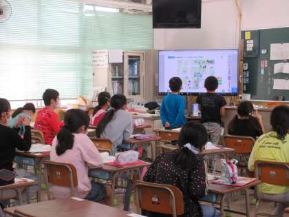 5年生の外国語、6年生の音楽と理科の学習の様子です。