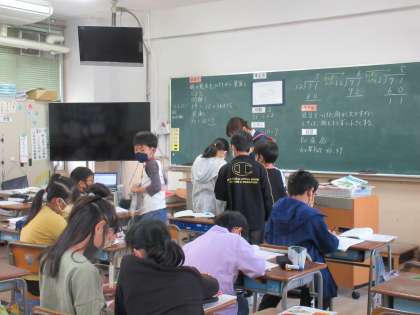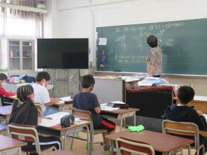 4年生の算数の学習の様子です。2学級を3分割して学習しています。