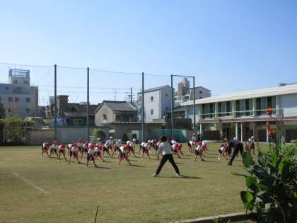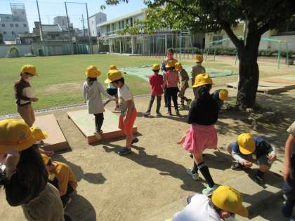 1年生の体育と2年生の生活の学習の様子です。2年生は「秋見つけ」で落ち葉集めをしています。