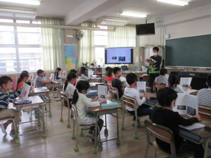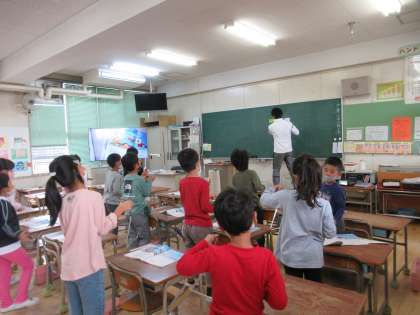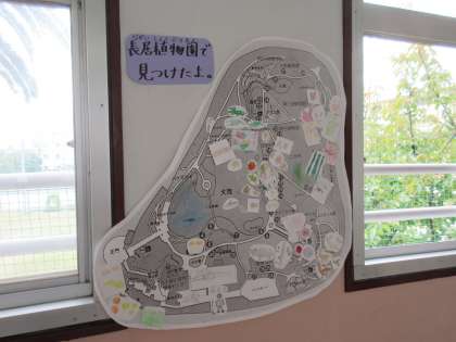 1年生の音楽、2年生の国語の学習の様子です。一番下の地図の写真は、先日の遠足で植物園に出かけた時に見学したことをまとめたものです。