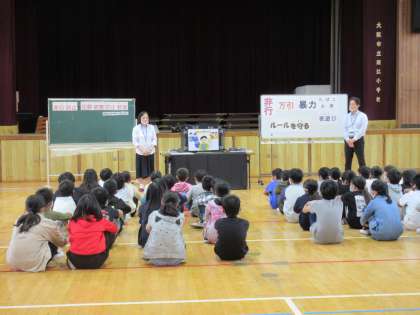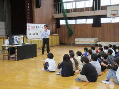 今日は中央少年サポートセンターの方に来ていただいて、5年生対象に「非行防止教室」をしていただきました。