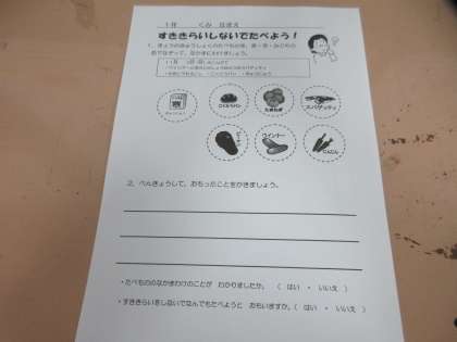 今日の学習は「すききらいしないで食べよう」でした。食事をとることの大切さや栄養について楽しく学びました。