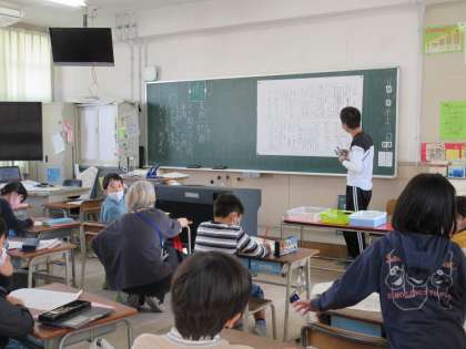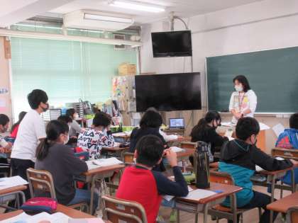 5年生の外国語、6年生と2年生の国語の学習の様子です。外国語は担任の先生とC-NETのクリストファー先生、藤井先生と学習をしています。