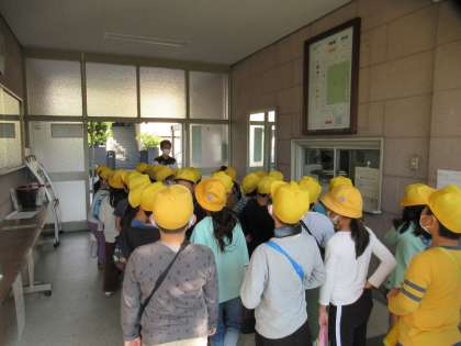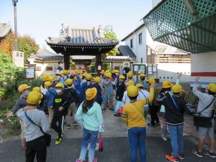 今日は2年生が2時間目と3時間目を使って深江の町たんけんに出かけました。校区内をみんなで一緒に歩いて探検しました。