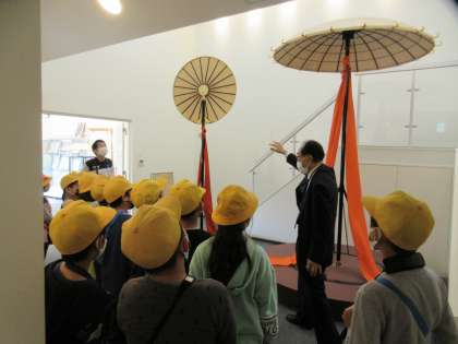 たんけんでは、深江郷土資料館を開けていただいて見学させていただきました。展示物の詳しい説明やリーフレットもいただきました。郷土資料館の横の菅田も見せていただきました。深江の町の歴史がわかりました。