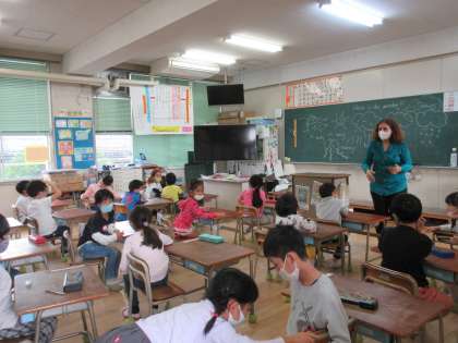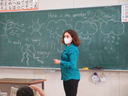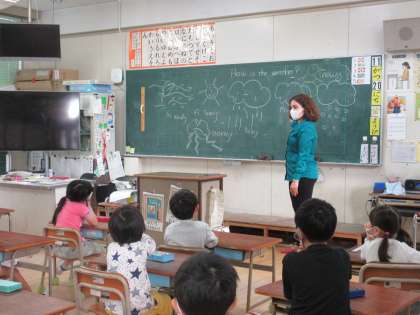 今日は1・2年生で外国語活動を行いました。アナ先生からお天気のいい方について教えていただきました。