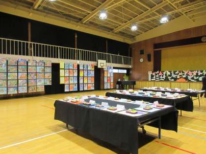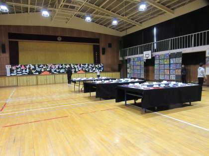 作品展を控えて、講堂の準備が完了しました。みんな力作ばかりです。明日、明後日で見ていただけますのでお楽しみにしてください。