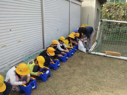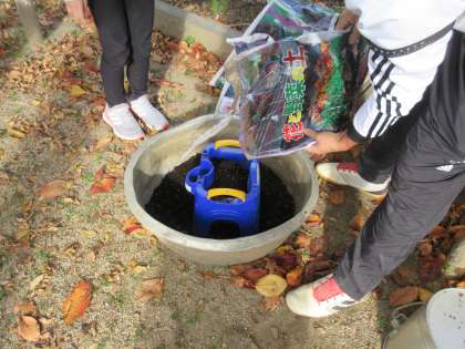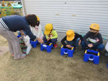 1年生が生活科でチューリップの球根を植えています。春が楽しみです。