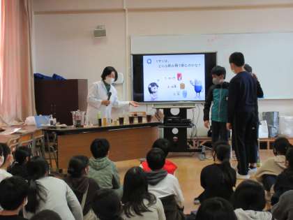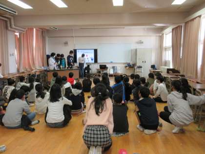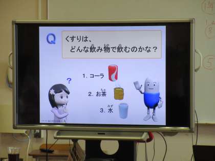 今日は6年生が学校薬剤師の福井先生から薬についていろいろ教えていただきました。薬の飲み方などを実験も交えてお話してくださいました。ありがとうございました。