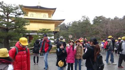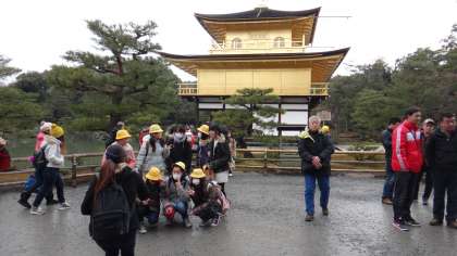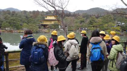 6年生は2月3日に京都方面へ卒業遠足に出かけました。バスに乗り、1時間少々で世界遺産、金閣寺につきました。北向きの屋根には少し雪があり、金色の美しい姿に感激していました。